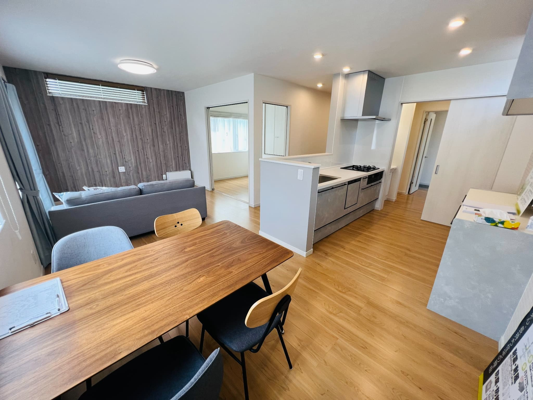 洗練された白の外観と、家族が心地よく過ごせるLDK空間が魅力の新築住宅