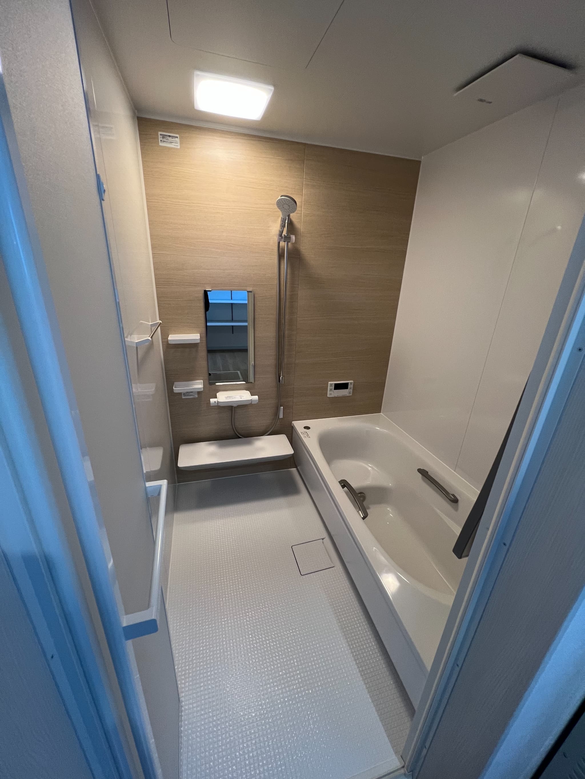床材やアクセントウォールに木目を取り入れ、ナチュラルで落ち着いた雰囲気を演出。シンプルな白壁との組み合わせで上品さも際立ちます。
