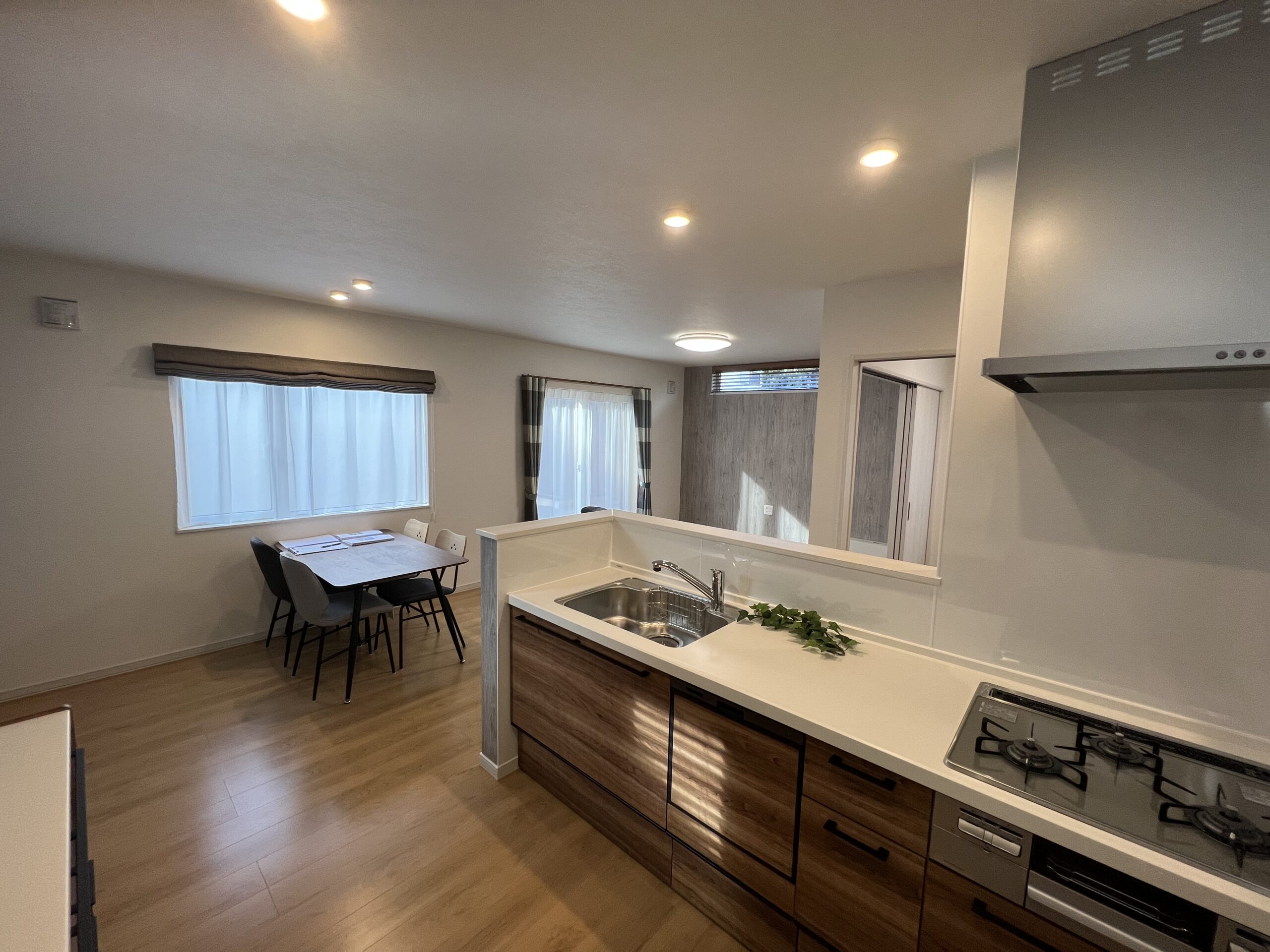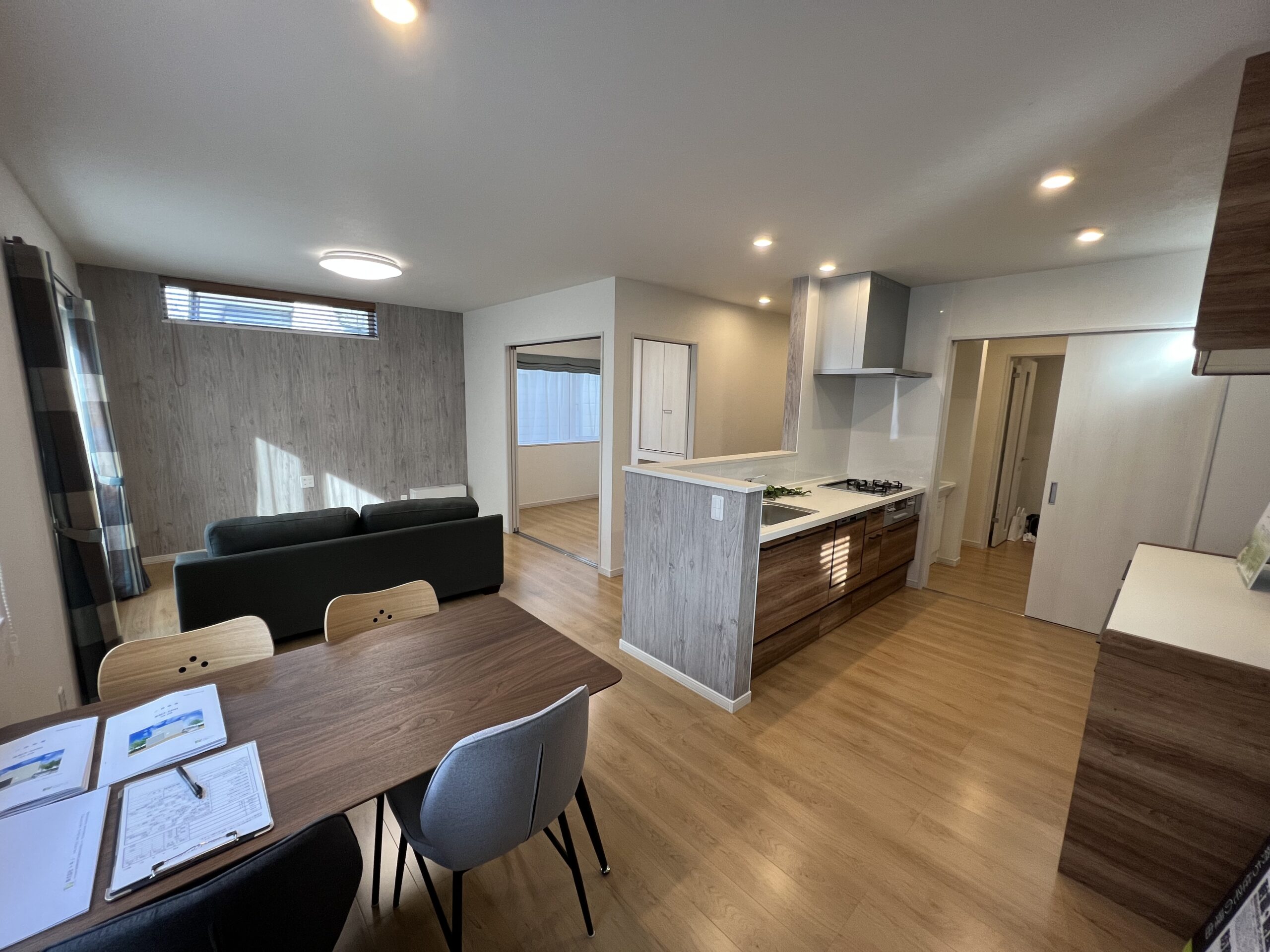 リビング・ダイニング・キッチンがゆるやかにつながる間取りで、家族が自然と集まる心地よい空間を演出。
