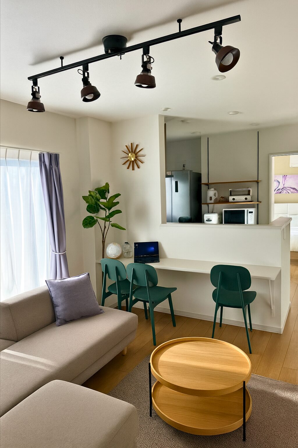 開放的なLDKと清潔感ある寝室、充実したキッチン・ランドリー設備を備え、長期滞在でも快適に過ごせる快適な宿泊環境を提供します。