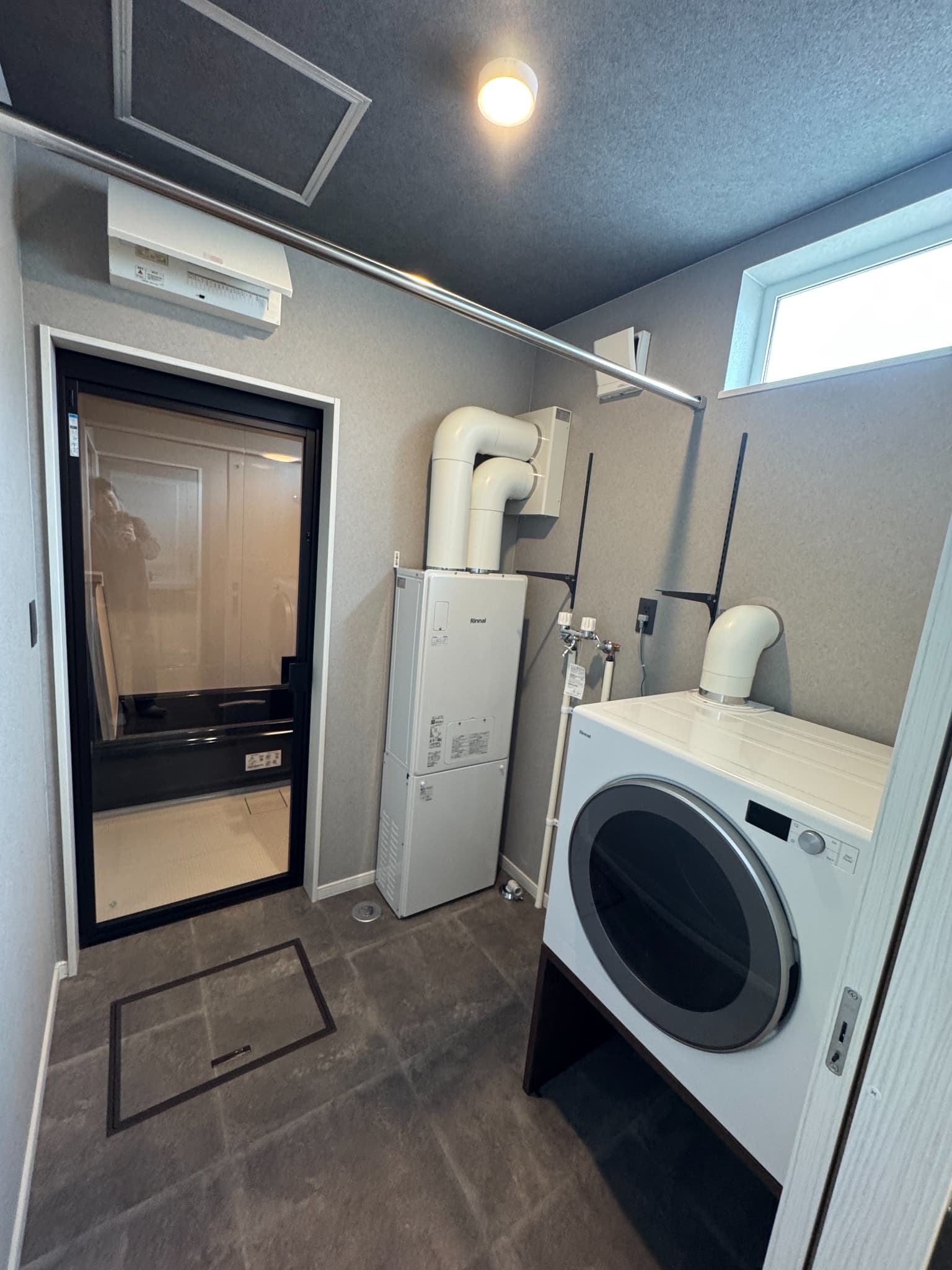 洗面・ランドリー・浴室をまとめた1階の水まわりに加え、2階にはシャワールームを配置。トイレを各階に備えることで、ゲストが快適に過ごせる使いやすい動線を確保しています。